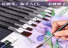 水粉画笔套装水彩笔毛笔丙烯油画排笔画画...